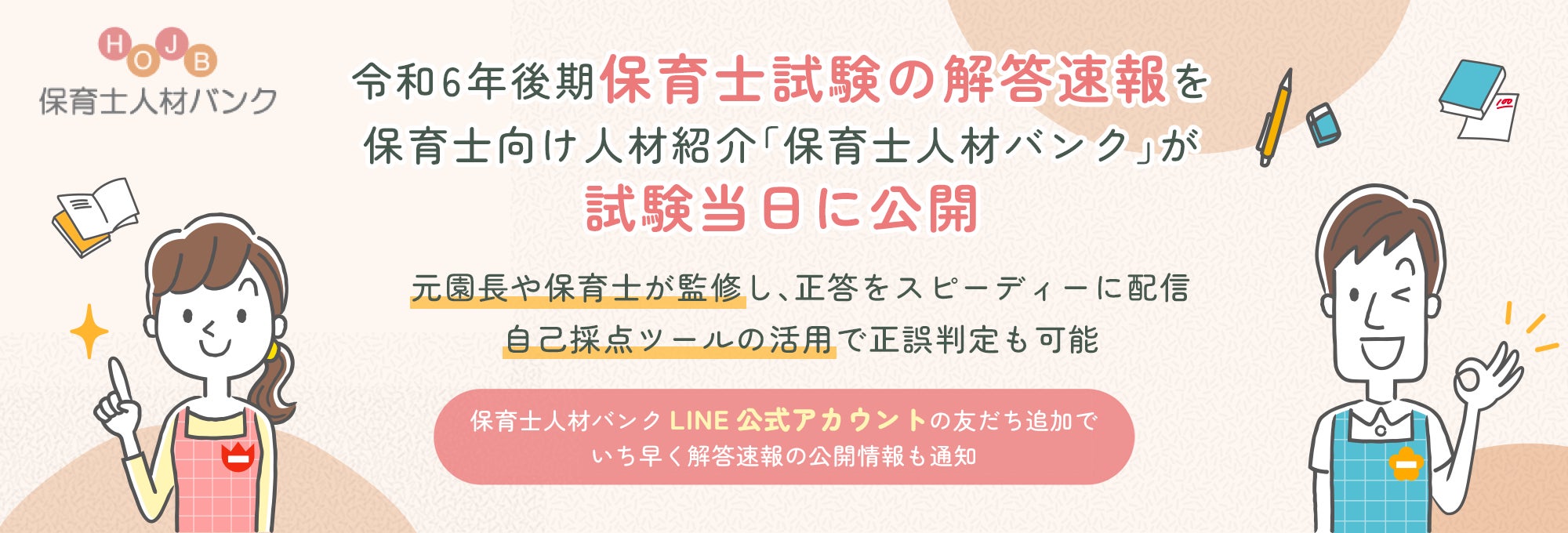 2024年10月21日追記:X情報ですが、保育士人材バンクが試験当日解答速報を出しているそうです。